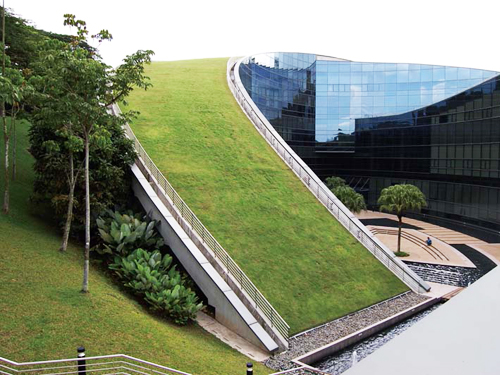 屋頂綠化是人們根據建筑屋頂結構特點、荷載和屋頂上的生態環境條件,在建筑物頂部及一切特殊空間建造綠色景觀的一種形式。它可以改善城市環境和氣候,緩解城市的“熱島效應”,調節城市的溫度和濕度。